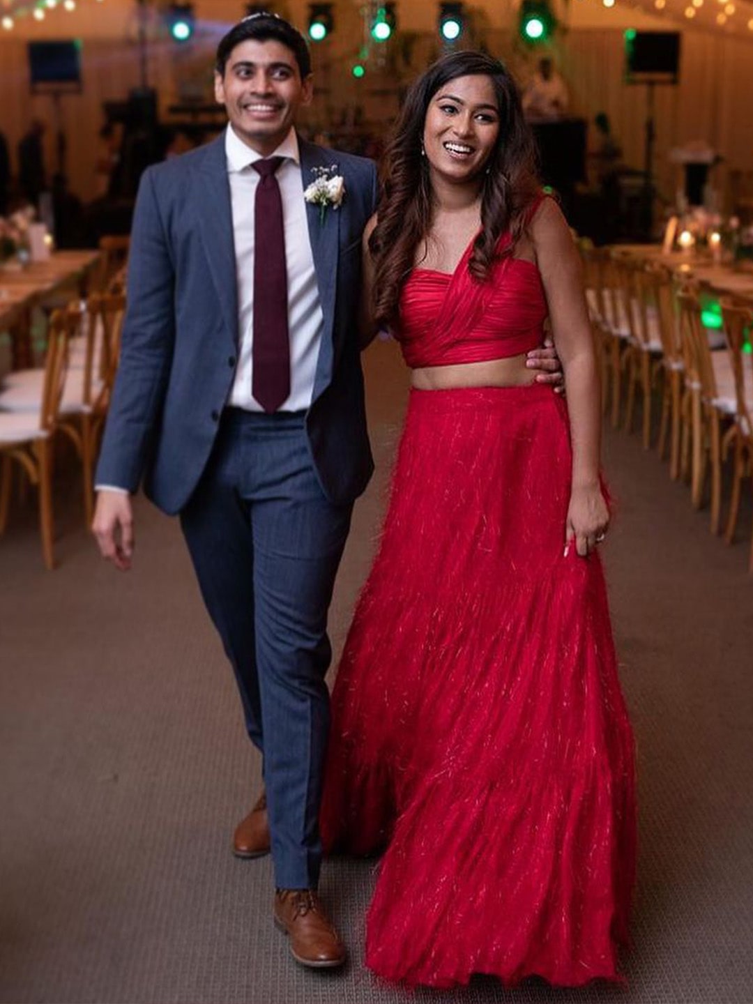 Featuring Feather tiered Lehanga Skirt with detachable dupatta.